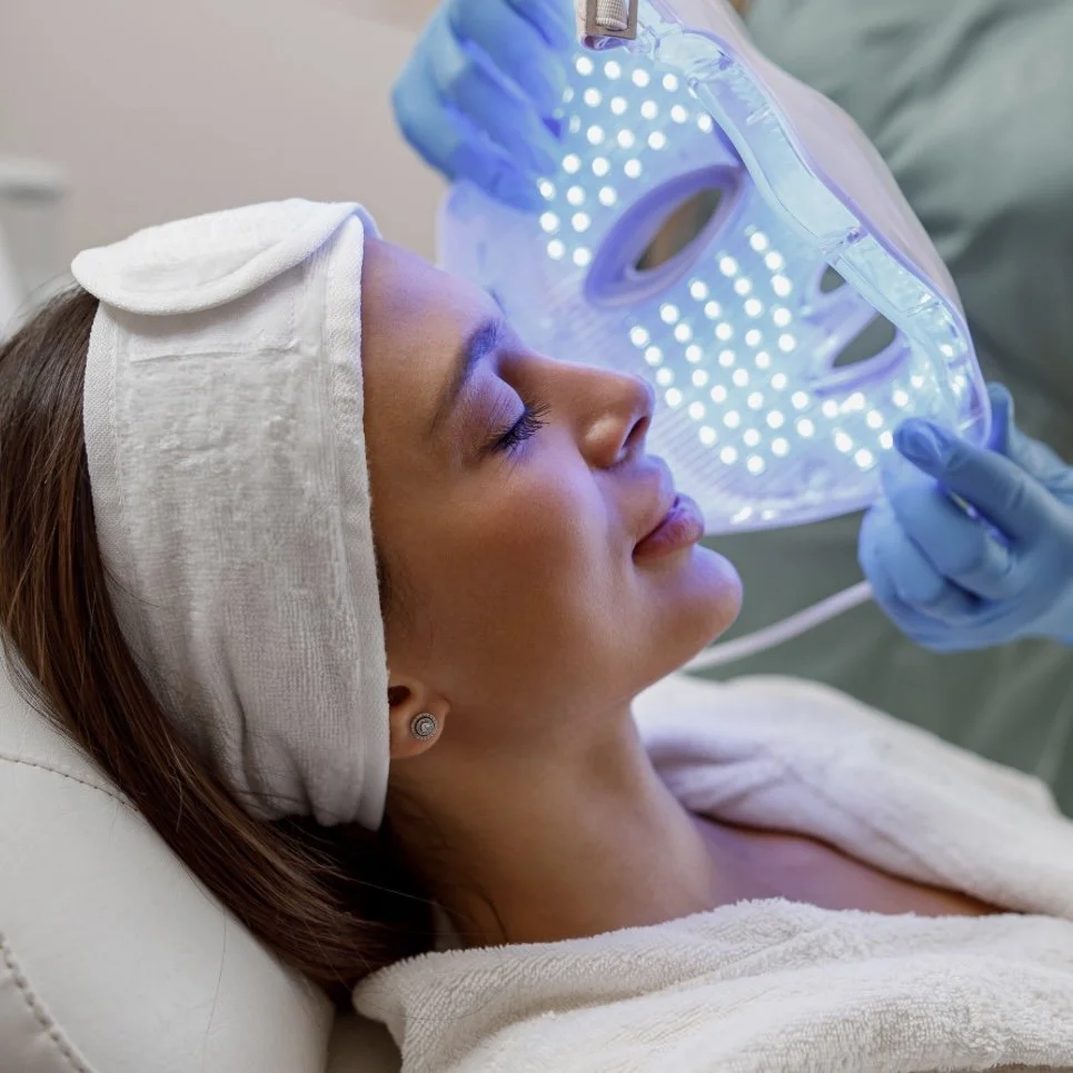 A gentle, non-invasive treatment using therapeutic wavelengths of light to target skin concerns at a cellular level. Red light boosts collagen production and reduces inflammation, while blue light helps to clarify acne-prone skin. This treatment enhances radiance, smooths fine lines, and supports the skin's natural healing process-leaving you glowing from within.